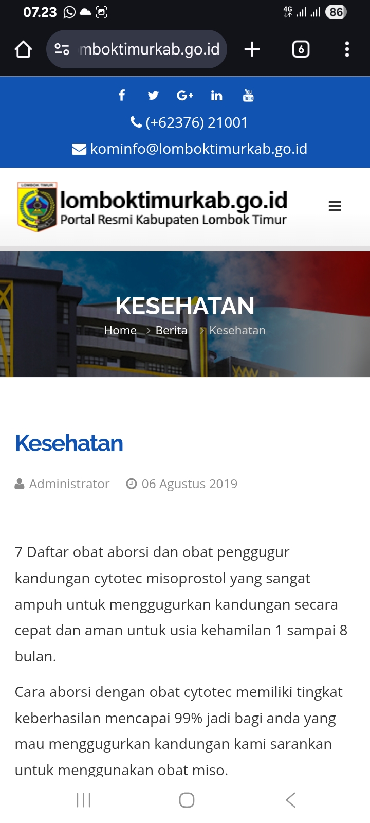 Lombok Timur, Lombokfokus.com – Dugaan peretasan menimpa portal resmi Pemerintah Kabupaten Lombok Timur. Artikel pada laman kesehatan justru berisi daftar obat penggugur kandungan.