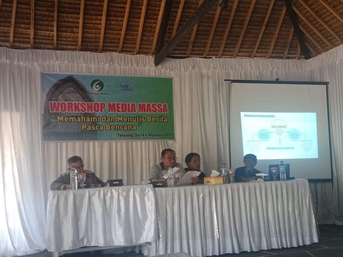 Tampak hadir dari beberapa pewarta media, diantaranya dari Suara NTB, TVRI NTB, SCTV, Samalas TV, Seputar Lombok Com serta dari perwakilan Lembaga Swadaya Masyarakat. Workshop berakhir dengan peninjauan lapangan di Dusun Tanaq Muat Desa Kayangan. Melihat dari dekat, kehidupan masyarakat setempat pascabencana. Bagaimana bisa bertahan hidup dalam keadaan yang masih terbatas. Tampak raut optimisme tetap ada bekerja produktifbsembari menanti pembangunan Rumah Tahan Gempa.