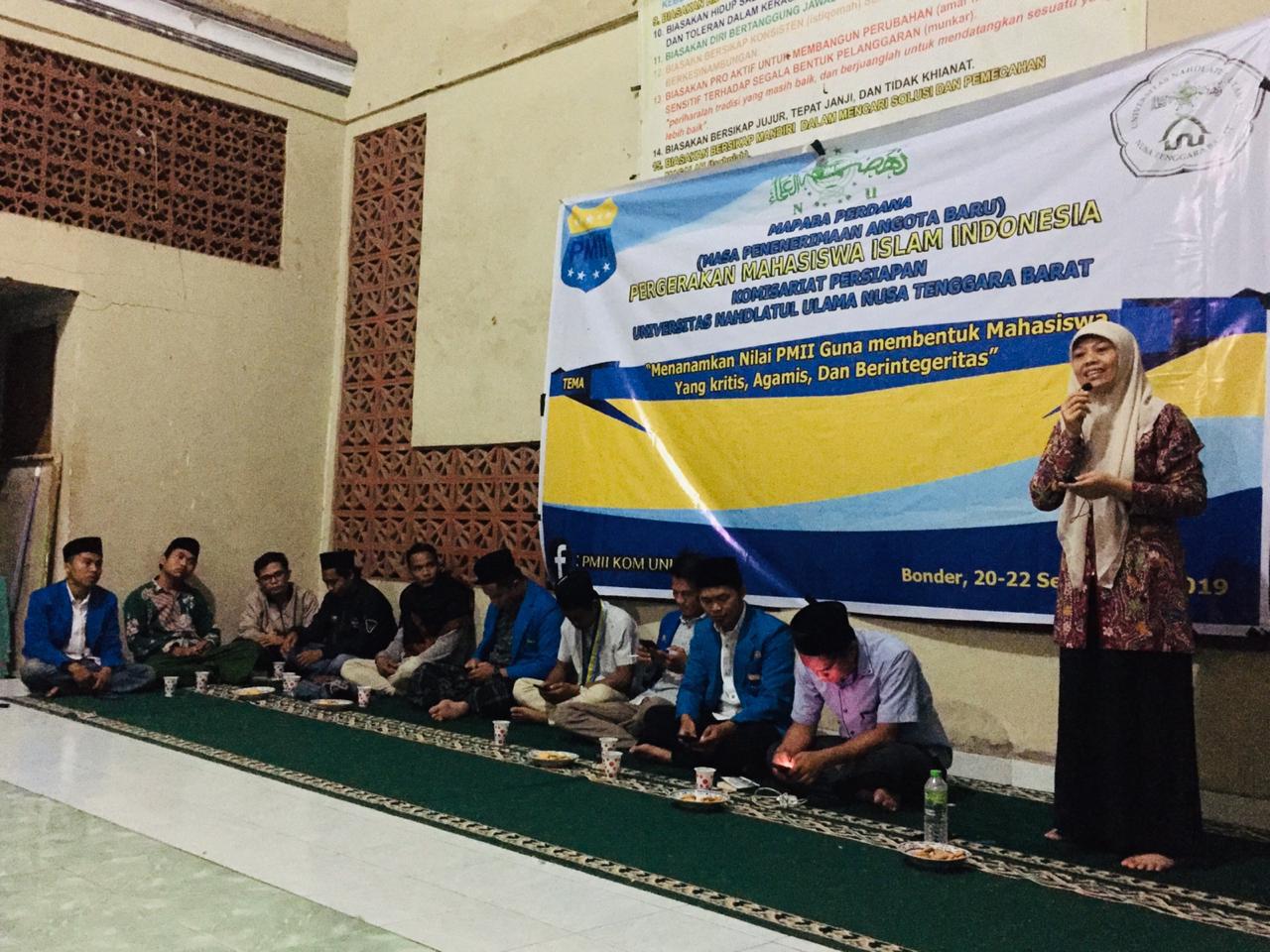 Sementara itu, Herman selaku ketua Cabang PMII Kota Mataram menyatakan dalam sambutannya, “PMII adalah organisasi kemahasiswaan yang menjunjung tinggi nilai Ahlussunnah Wal Jamaah,” tegasnya.