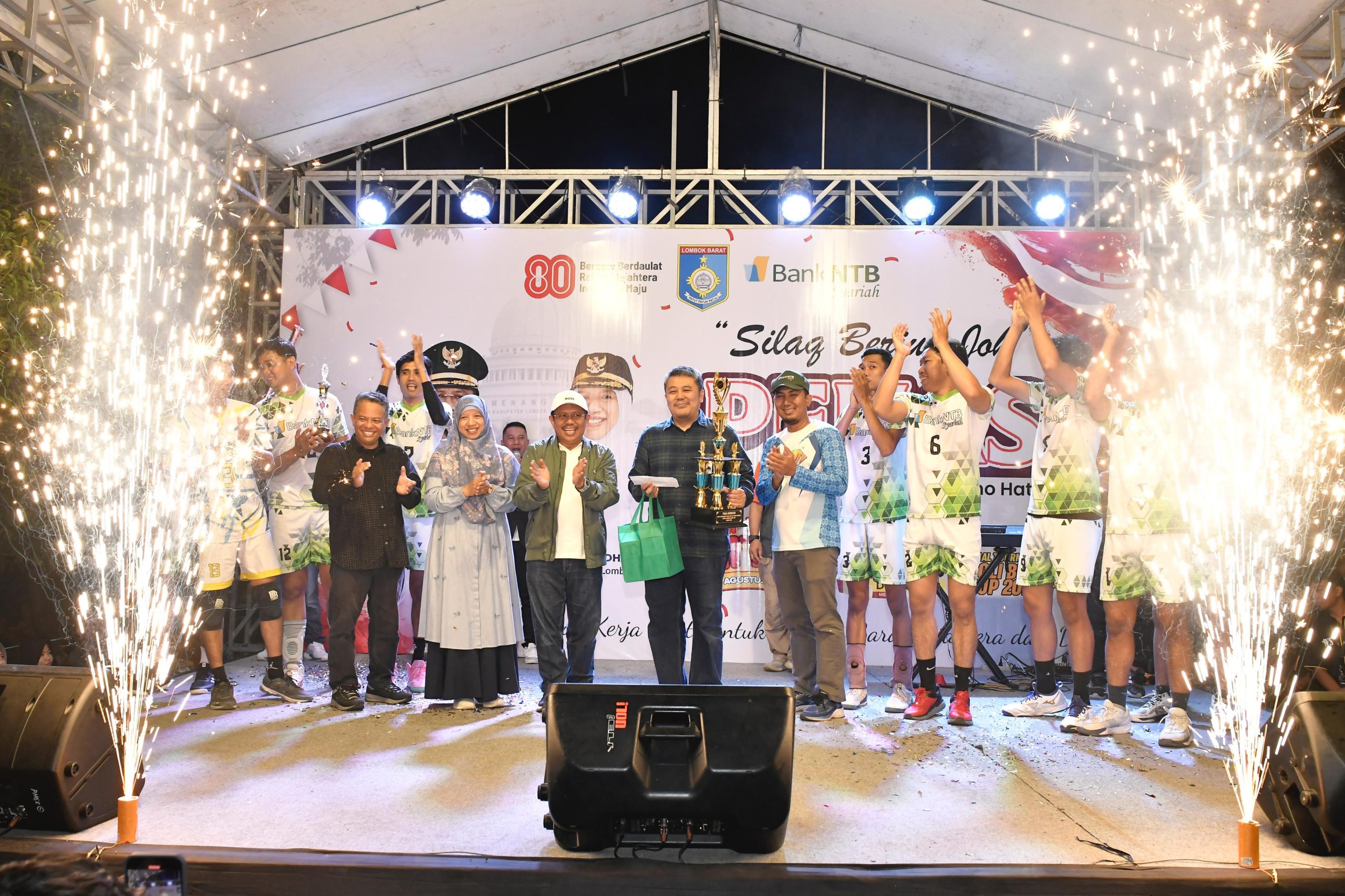 Tim Bank NTB Syariah berhasil keluar sebagai juara setelah mengalahkan Tim Puncang Sari di laga puncak yang digelar di Lapangan Voli Taman Kota Gerung, Sabtu (23/8).
