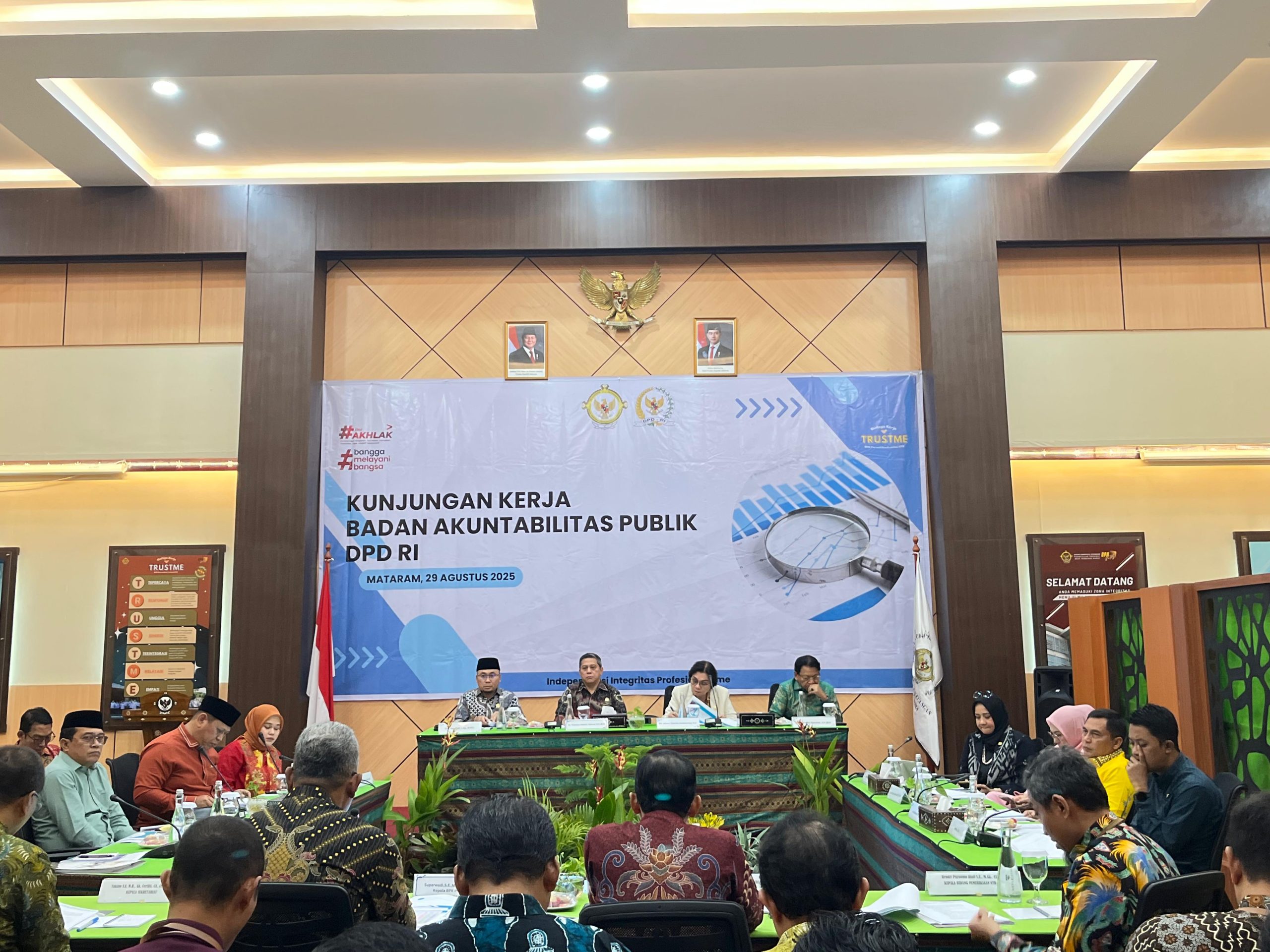 Mataram – Badan Akuntabilitas Publik (BAP) Dewan Perwakilan Daerah (DPD) RI menegaskan pentingnya pengelolaan anggaran daerah yang transparan dan bebas dari praktik mark up. Hal ini disampaikan dalam rapat konsultasi bersama Badan Pemeriksa Keuangan (BPK) Perwakilan Provinsi NTB terkait tindak lanjut Ikhtisar Hasil Pemeriksaan Semester II Tahun 2024, yang digelar di Kantor BPK NTB, Jumat (29/8/2025).