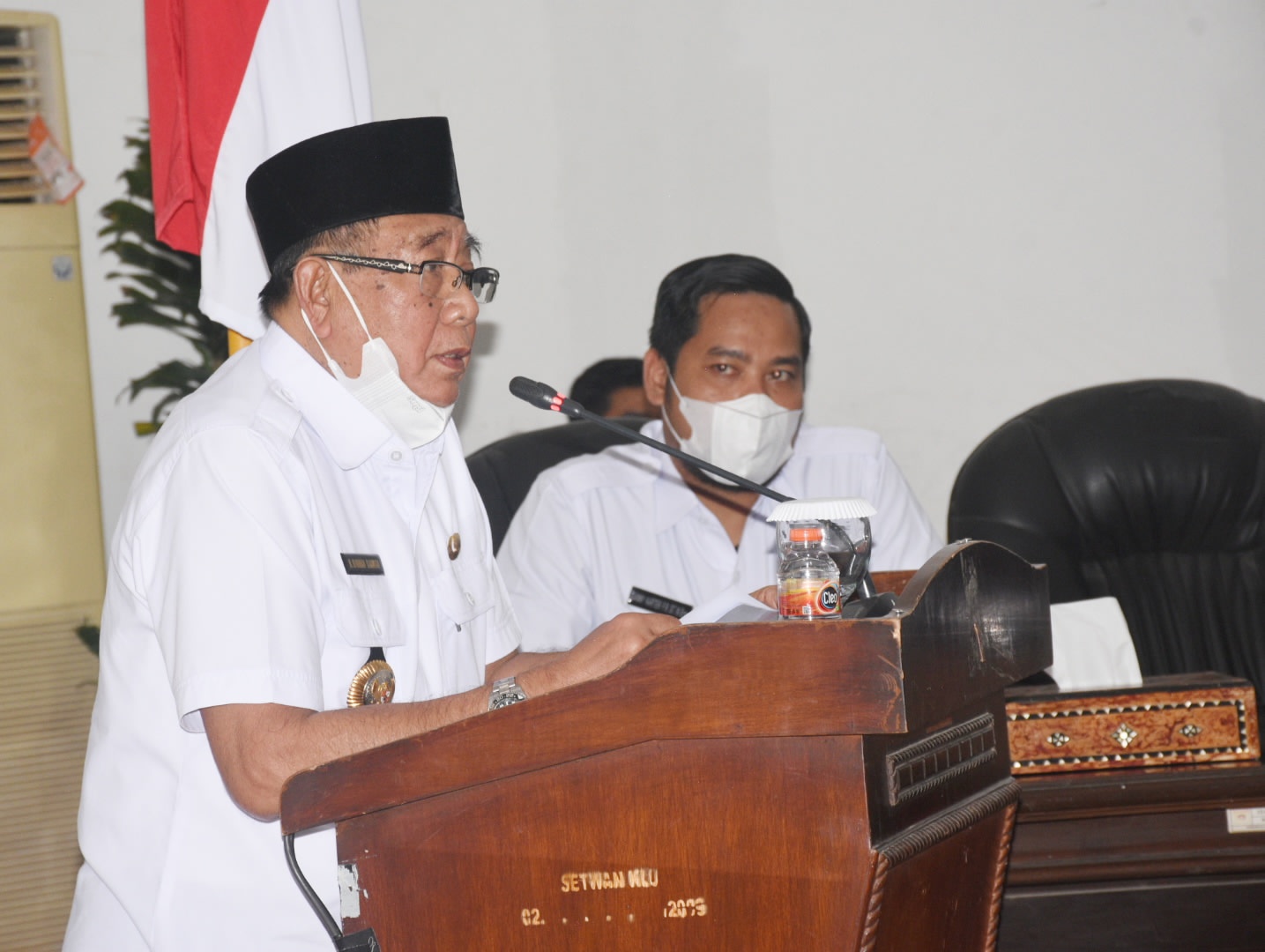 LOMBOK UTARA – Bupati Lombok Utara H Djohan Sjamsu SH bersama Wabup Dani Karter Febrianto ST MEng menghadiri Paripurna Pendapat Akhir Fraksi-Fraksi Dewan Perwakilan Rakyat Daerah (DPRD) Kabupaten Lombok Utara (KLU) terhadap Raperda pencabutan Perda Nomor 6 Tahun 2016 di Ruang Aula DPRD setempat (10/3/2021). Hadir pula Penjabat Sekda KLU Drs H Raden Nurjati, unsur Pimpinan OPD, Para Camat dan undangan lainnya.