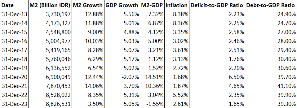 Rasio utang terhadap PDB ↑ → Pengeluaran Defisit ↑ → M2 ↑ → Inflasi ↑ → Daya Beli ↓