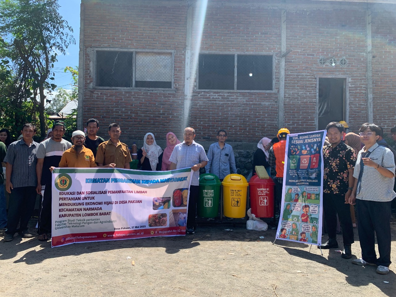Lombok Barat – Inovasi pengelolaan limbah pertanian membawa angin segar bagi warga Dusun Pesantek, Desa Pakuan, Kecamatan Narmada, Kabupaten Lombok Barat. Berkat program pengabdian masyarakat yang diinisiasi oleh Program Studi Teknik Pertanian, Fakultas Teknologi Pangan dan Agroindustri, Universitas Mataram, limbah kulit pisang yang sebelumnya dibuang sembarangan kini berhasil diolah menjadi kompos padat dan pupuk organik cair (POC).