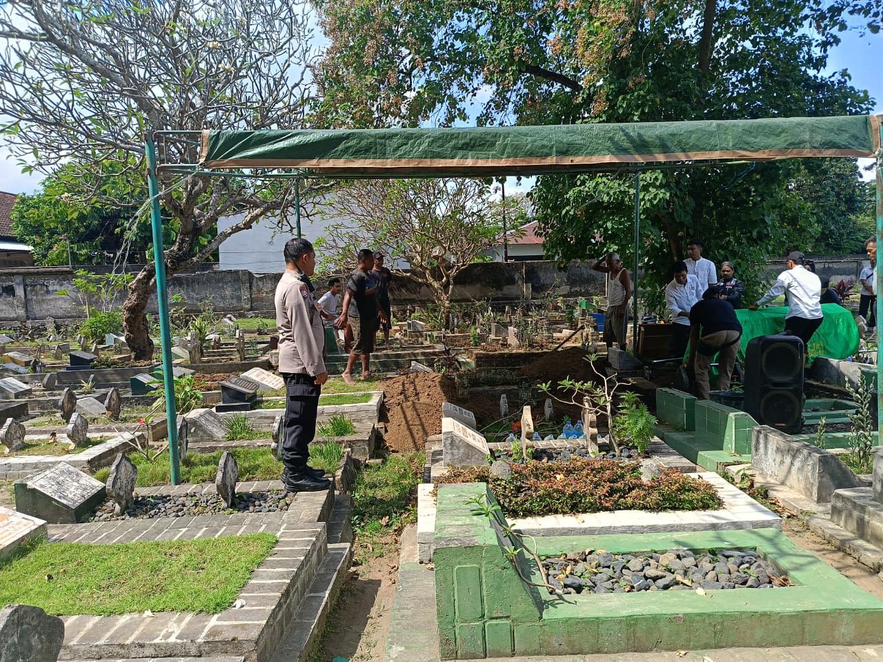 LombokFokus|Mataram — Suasana haru menyelimuti TPU Muslim Karang Medain, Kelurahan Mataram Timur, Selasa (1/7/2025). Di tengah keheningan, pemakaman seorang perempuan bernama Ariyanti (49 tahun) berlangsung sederhana namun penuh makna. Meski hidup dalam keterbatasan dan meninggal tanpa sanak keluarga di sisi, Ariyanti tetap dimakamkan secara layak berkat kepedulian sesama—termasuk kepedulian seorang anggota polisi yang turun langsung memberi penghormatan terakhir.