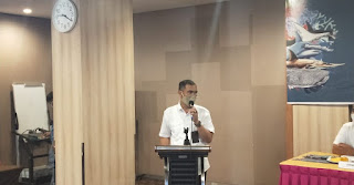| Yusron Hadi,Kepala Dinas Kelautan Dan Perikanan (Dislutkan) Provinsi NTB saat menyampaikan sambutan dalam acara koordinasi pelaksanaan Satuan Tugas tindak pidana bidang kelautan dan perikanan |