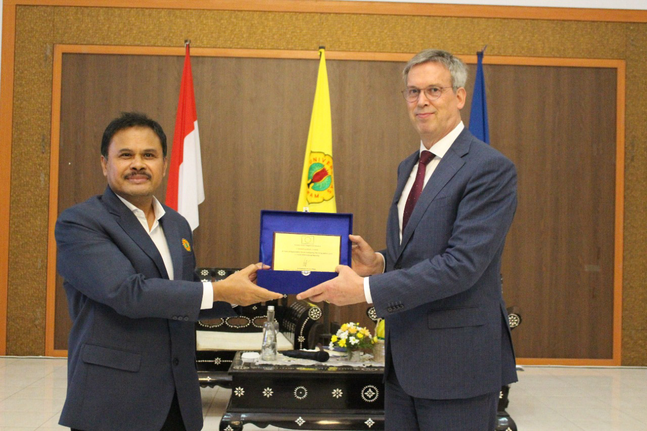 Lombok Fokus | Mataram – Duta Besar (Dubes) Uni Eropa H.E. Vincent Piket, Selasa (14/6/2022), berkunjung ke Universitas Mataram (Unram) dan menjadi narasumber dalam Ambassador Talk. pada kesempatan kunjungannya itu, Dubes Uni Eropa menjelaskan pentingnya Green and Digital Economy atau ekonomi hijau dan ekonomi digital.