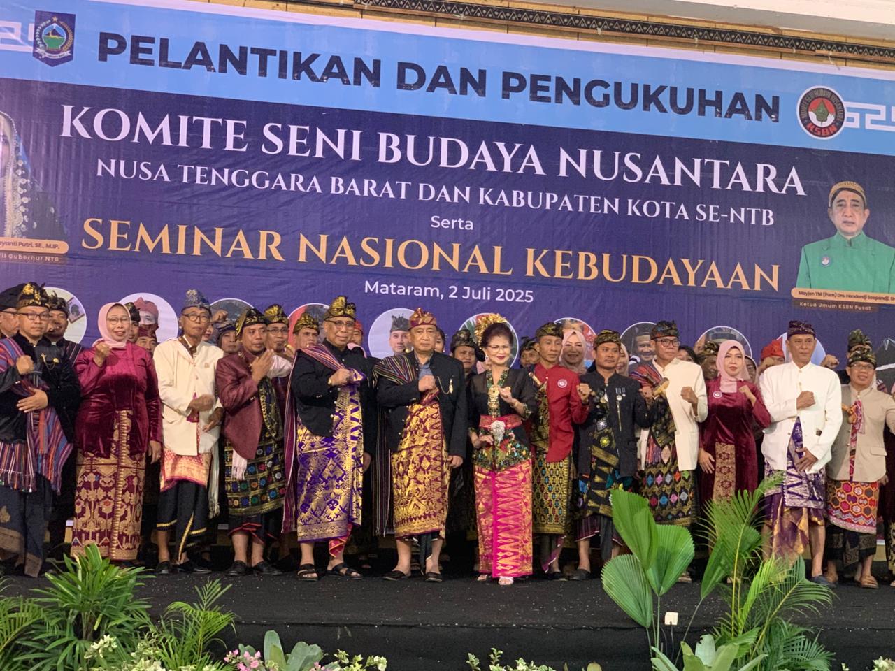 Mataram, Lombok Fokus – Komite Seni Budaya Nusantara (KSBN) Nusa Tenggara Barat (NTB) resmi mengukuhkan pengurus KSBN dari seluruh kabupaten/kota se-NTB dalam sebuah seremoni di Ballroom Islamic Center Mataram, Rabu (2/7/2025). Prosesi pelantikan ini dibuka langsung oleh Gubernur NTB, Dr. Lalu Muhamad Iqbal.