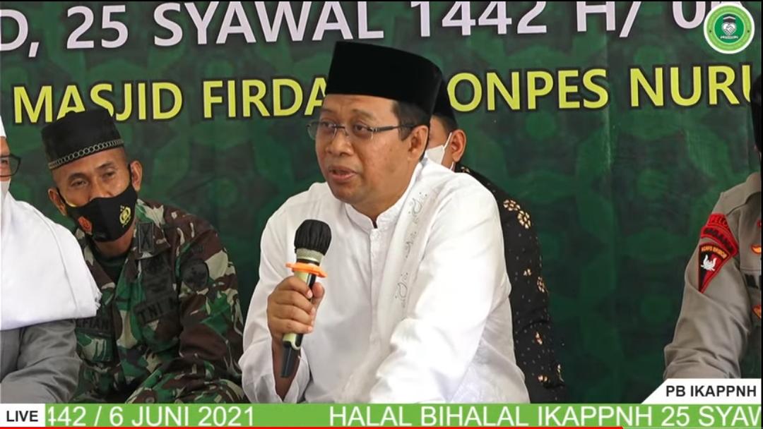 “keluarga besar dan para alumni untuk mengikuti ritual tahunan kita halal bihalal ini sangat besar namun situasi lah yang membatasi kita tanpa mengurangi substansi daripada ukhuwah dan dan dan dan tujuan yang ingin dicapai dari pada halal bihalal di q maka kami mengadakan dan virtual maka untuk ketidaknyamanan daripada alumni keluarga besar pondok pesantren Nurul hakim yang tidak bisa hadir di lokasi ini kami atas nama panitia mengucapkan mohon maaf kemudian pak Kapolda pak gubernur dan perwakilan dari danrem ketika flayer acara ini menyebar arahan kami selaku junior ketua panitia dikasih arahan oleh para senior ketua umum Ika ketua umum PP IKA PPNH dan pokoknya acara ini jangan sampai merepotkan kita menggunakan sumber daya yang ada makanya tidak ada satu surat pun yang kemudian beredar dalam hal untuk merepotkan para para stakeholder,” ucapnya.
