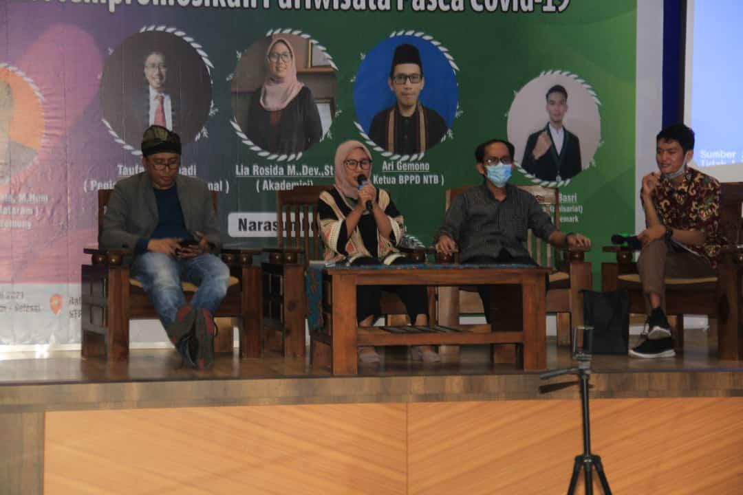 MATARAM – Himpunan Mahasiswa Islam Komisariat STP Mataram Cabang Mataram telah menyelenggarakan Program Tourism Discussion Club (TDC) yang perdana dengan tema “Bagaimana Peran Akademisi dan Praktisi Dalam Mempromosikan Pariwisata Pasca Covid 19” yang dirangkaikan dengan buka puasa bersama pada tanggal 29 April 2021 di Ballroom Mandalika Sekolah Tinggi Pariwisata Mataram