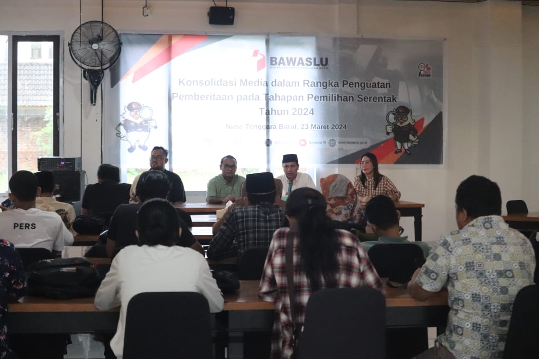 Mataram – Badan Pengawas Pemilu (BAWASLU) bersama 75 Awak media menggelar konsolidasi untuk evaluasi pemberitaan pada Pemilu 2024 dan menangkal berita bohong (Hoax) pada Pilkada mendatang.