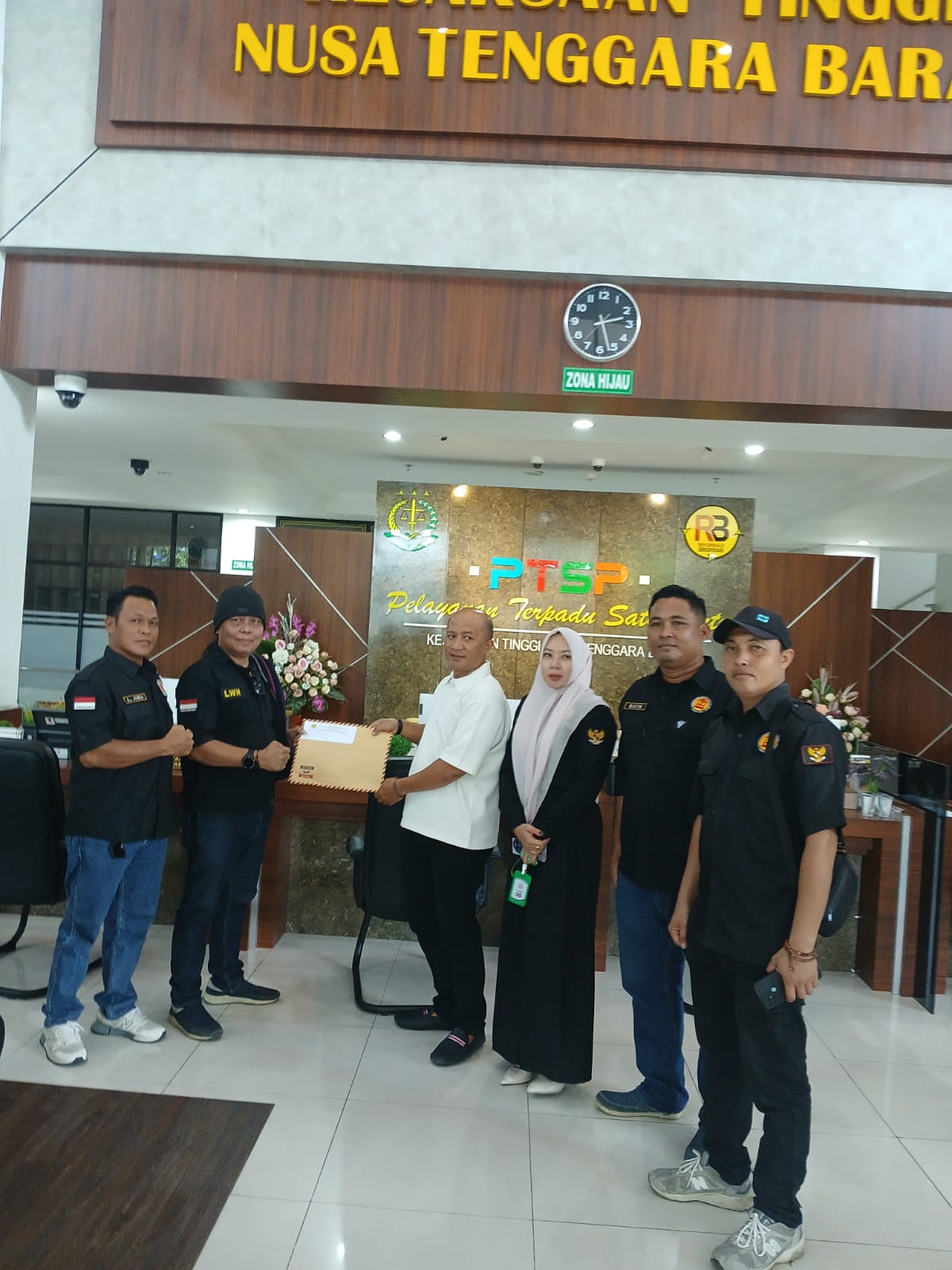 Rombongan diterima langsung oleh Kasi Penerangan Hukum Kejati NTB, Harun Al Rasyid, yang menerima dokumen laporan secara resmi.