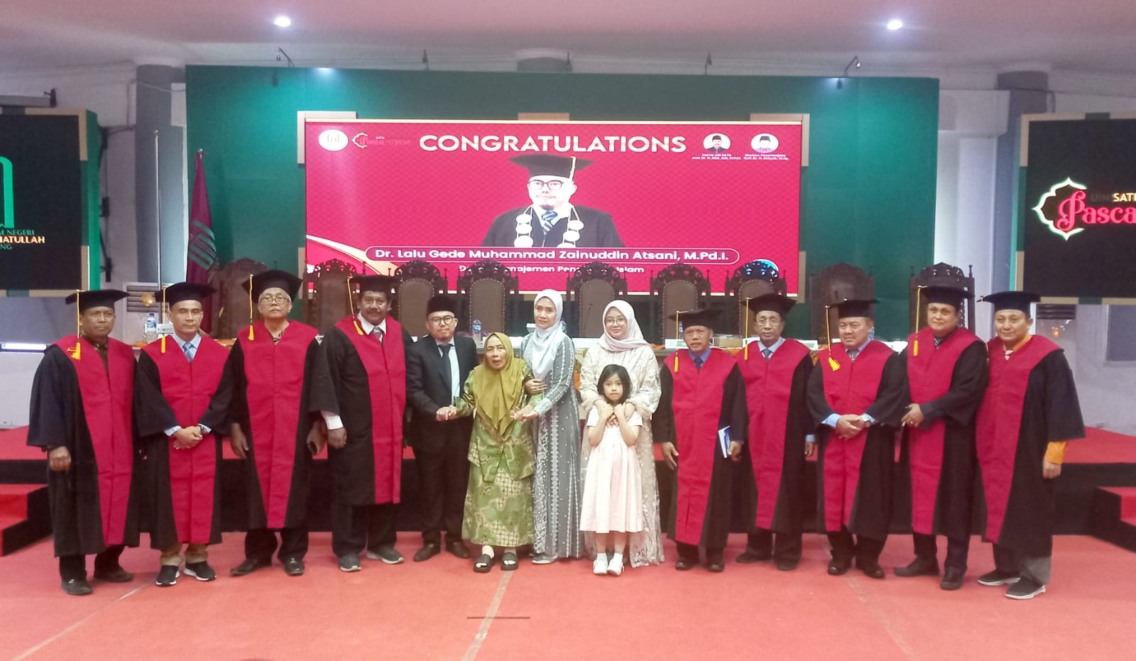 “Provendus atas nama Lalu Gede Muhammad Zainuddin Atsani lulus menjadi Doktor ke 158 Prodi Managemen Pendidikam Islam Pascasarjana UIN SATU dengan prefikat Cumlaude,” katanya disambut tepuk tangan dari ratusan audiens yang hadir.