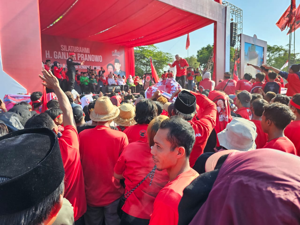 Mataram – Konsolidasi akbar Bakal Calon Presiden (Bacapres) Partai Demokrasi Indonesia Perjuangan (PDIP) Ganjar Pranowo di Lapangan Nasional Selong Lombok Timur berlangsung meriah.