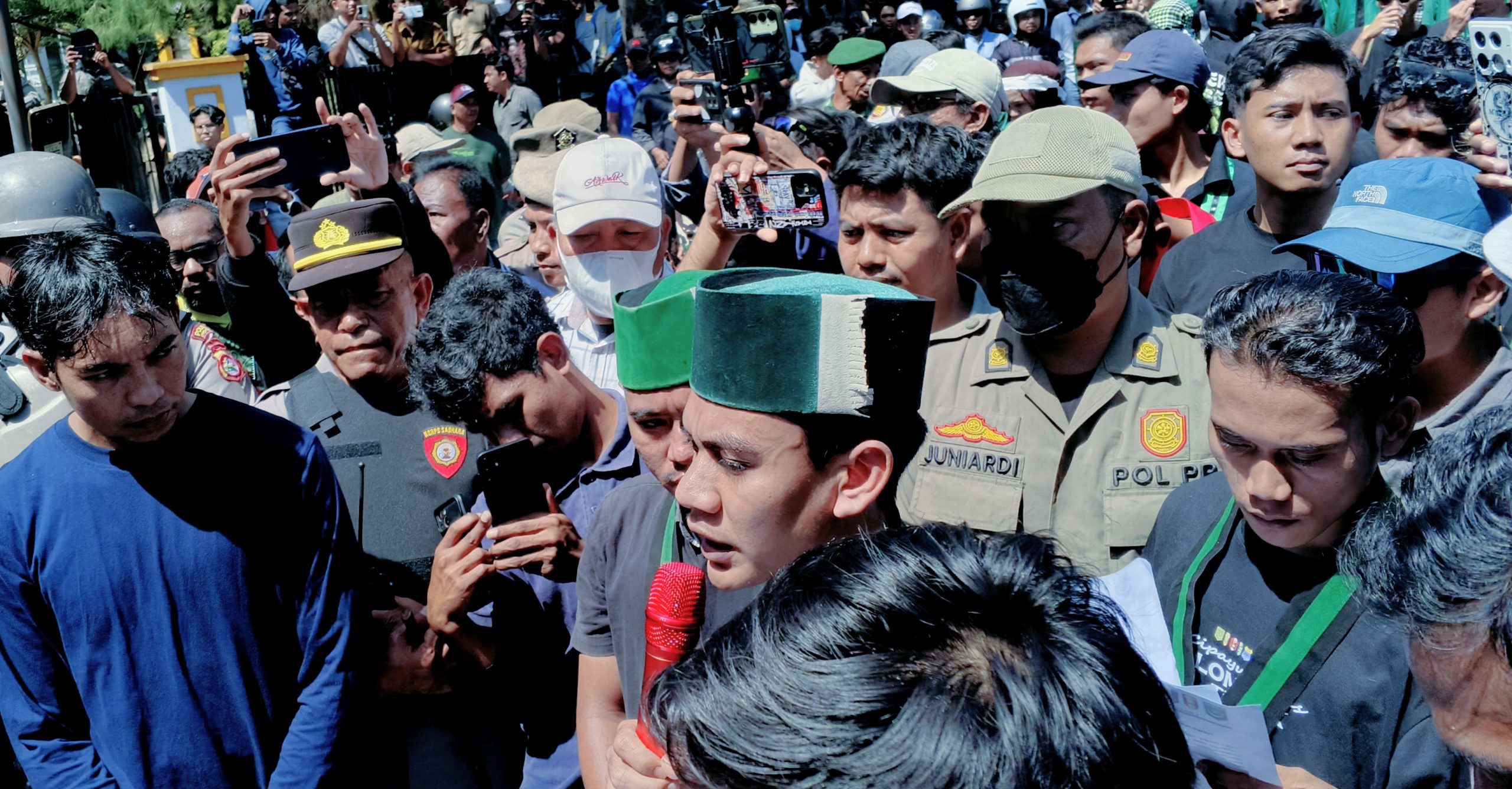 ‎”Jumlah kita semakin banyak, hati-hati penyusup yang memprovokasi kita,” ujar nya lantang menggunakan pengeras suara.