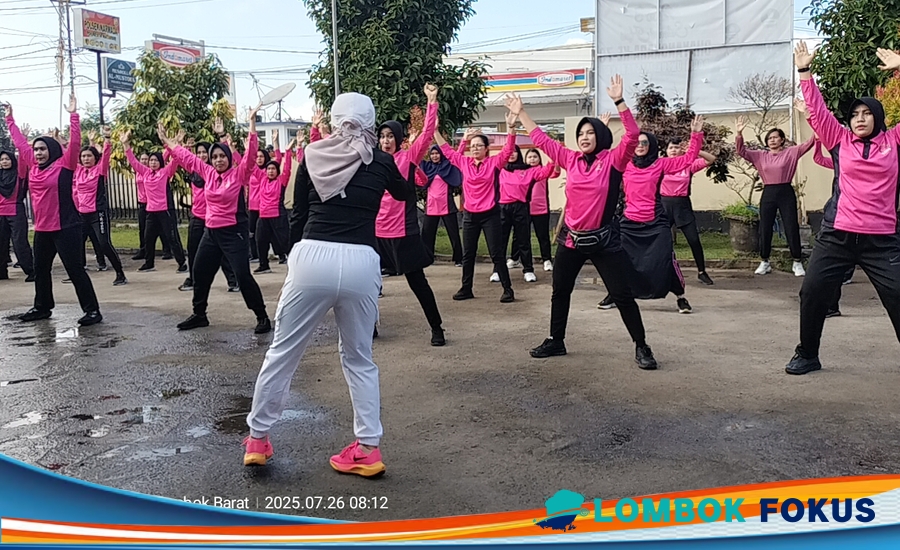 LombokFokus|Narmada — Mentari pagi yang cerah disambut penuh antusias jajaran Polsek Narmada. Bertempat di halaman Mapolsek, Sabtu (26/7/2025), para personel bersama ibu-ibu Bhayangkari Ranting Narmada, tampak kompak mengikuti senam bersama yang digelar mulai pukul 08.00 Wita.