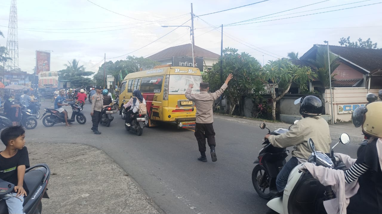 Petugas fokus mengurai potensi kemacetan di depan pasar yang kerap padat saat warga berburu takjil. Pengaturan arus dan bantu penyeberangan pejalan kaki jadi prioritas agar pengguna jalan tetap nyaman.