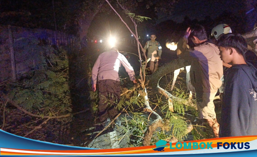 LombokFokus|Narmada – Saat sebagian besar warga masih terlelap, Rabu (23/7/2025) dinihari, personel Polsek Narmada justru berjibaku di tengah malam, demi keselamatan pengguna jalan. Sekitar pukul 01.00 Wita, sebuah pohon tumbang dan melintang di Jalan Ahmad Yani, tepatnya di wilayah Lembuak, Kecamatan Narmada, Kabupaten Lombok Barat.