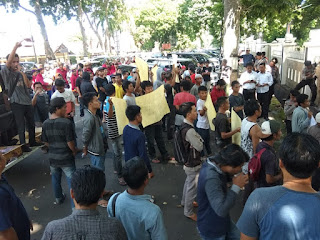 Mataram – Ratusan massa yang menamakan diri Aliansi Masyarakat untuk Keadilan (AMUK) NTB, berunjuk rasa di depan Pengadilan Negeri Mataram, Senin, 18 Maret 2019.