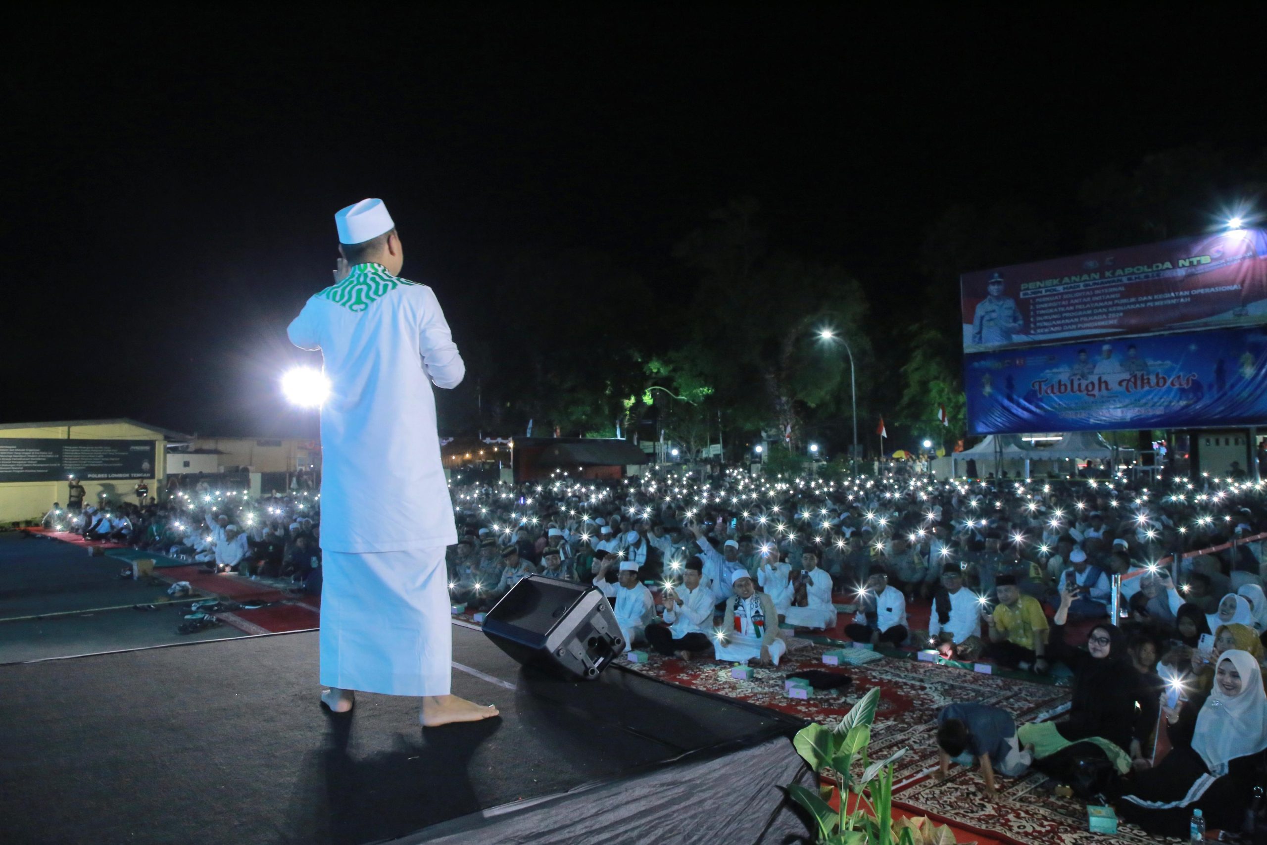 Acara tabligh akbar ditutup dengan doa bersama untuk keselamatan bangsa dan kelancaran tugas kepolisian menghadapi tantangan ke depan.