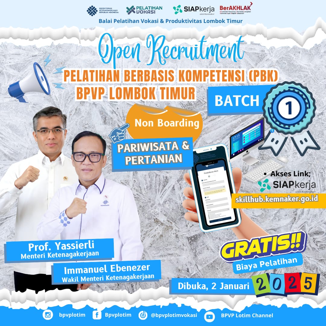 Lombok Timur Lombokfokus.com – Balai Pelatihan Vokasi dan Produktivitas (BPVP) Lombok Timur (Lotim) membuka pelatihan berbasis kompetensi (PBK) pertama pada tahun 2025 ini.