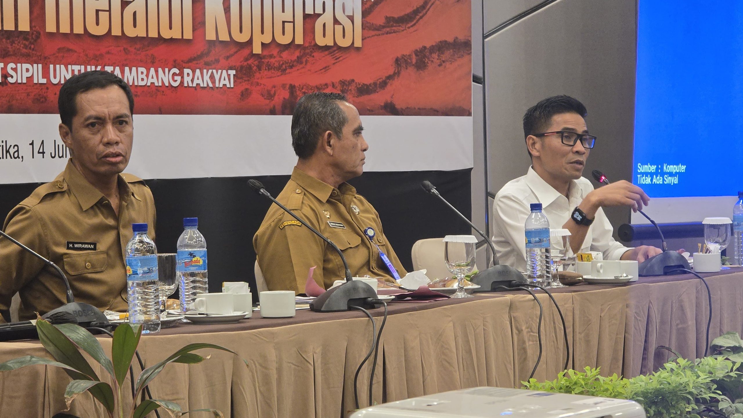 FGD dimulai dengan pemaparan pemateri pertama, Plt Kepala Dinas ESDM NTB, Wirawan Ahmad. Ia menjelaskan, pada prinsipnya, Pemprov NTB mendorong adanya akselerasi dan implementasi konsep ta.bang rakyat melalui koperasi.
