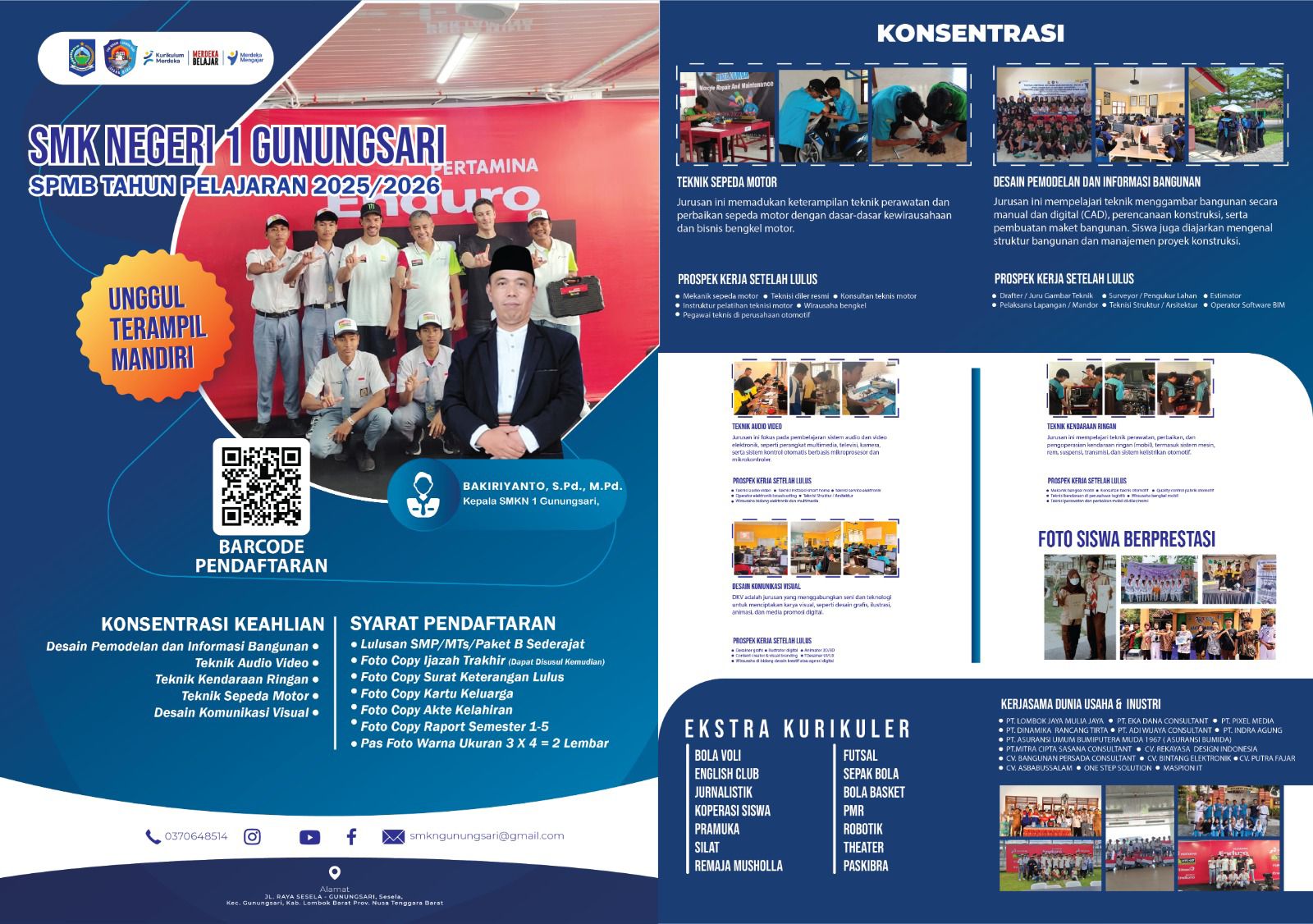 Lombok Barat – Sekolah Menengah Kejuruan Negeri (SMKN) 1 Gunungsari dengan bangga mengumumkan pembukaan Sistem Penerimaan Murid Baru (SPMB) untuk Tahun Pelajaran 2025/2026.