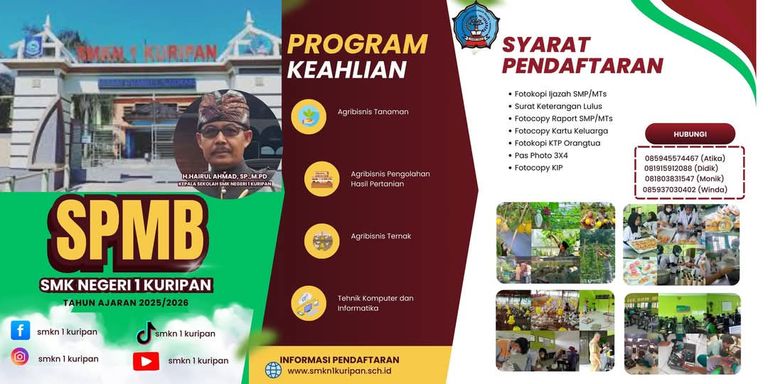Lombok Barat – Sekolah Menengah Kejuruan Negeri (SMKN) 1 Kuripan resmi membuka pendaftaran Sistem Penerimaan Murid Baru (SPMB) untuk tahun ajaran 2025/2026.