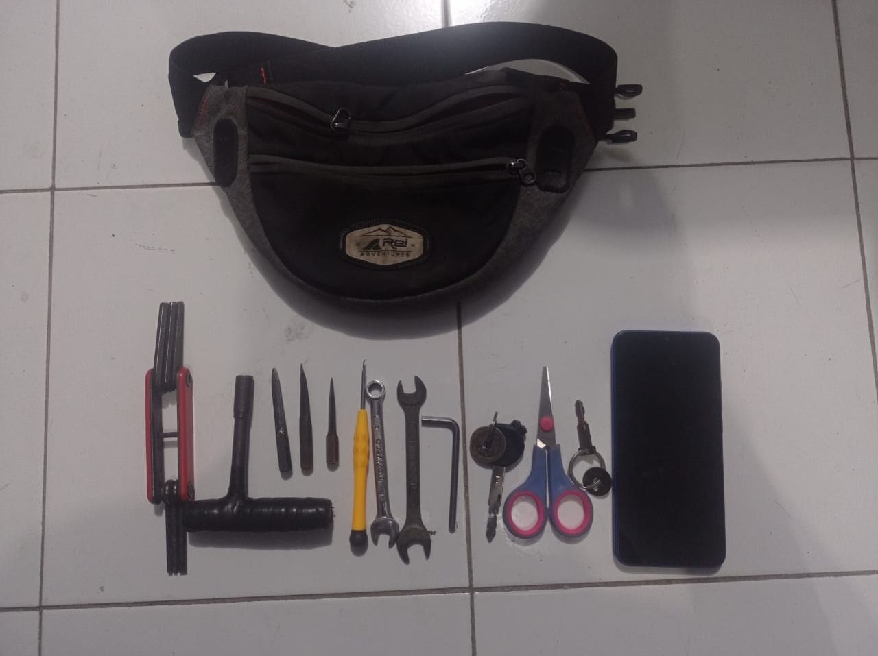 Diamankan juga barang bukti satu buah HP Redmi 9C warna biru, tiga buah anak kunci T, satu buah pegangan kunci T, satu buah obeng, dua buah kunci kranjang, satu buah kunci L, satu buah gunting kecil, satu buah obeng lengkap, dua buah kunci spm motor dan satu buah tas pinggang warna hitam.